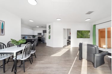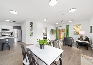 Open floor plan dining and living space